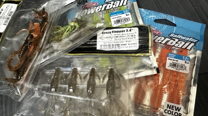 中にはソルト用ではなくても、ドライブクローやクレフラなどチニングで何年も前から数多くの釣果が報告されているものもあります。そのようなタイプの特徴としてトゥイッチ、軽いジャーク、ボトムバンピングなどアクションを入れることで高いレスポンスを発揮してくるものが多いです。
