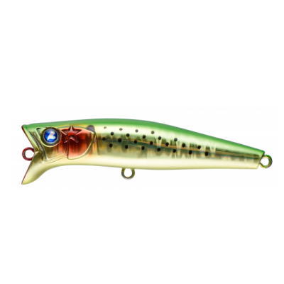 最初はトップウォーターから、ポッパーで初めて見ました。ガイドのセッティングや自重の軽量化からか6.5gのポッパーでもけっこう飛ぶ印象。ロッドを軽く動かしてからのドッグウォークアクションも思うように動かせる。このあたりは少し太い硬めのティップが功を奏している。