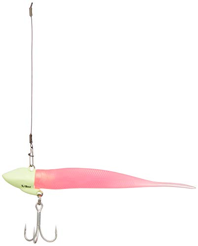 タチウオのワインド専用に軽いラインテンションで楽にダートさせるための特殊な形状をしたワインド専用ジグヘッドとワームにトレブルフックにもうひとつトレーラーフックがついたものです。さらに中にはピンテールとシャッドテールの2本付き。