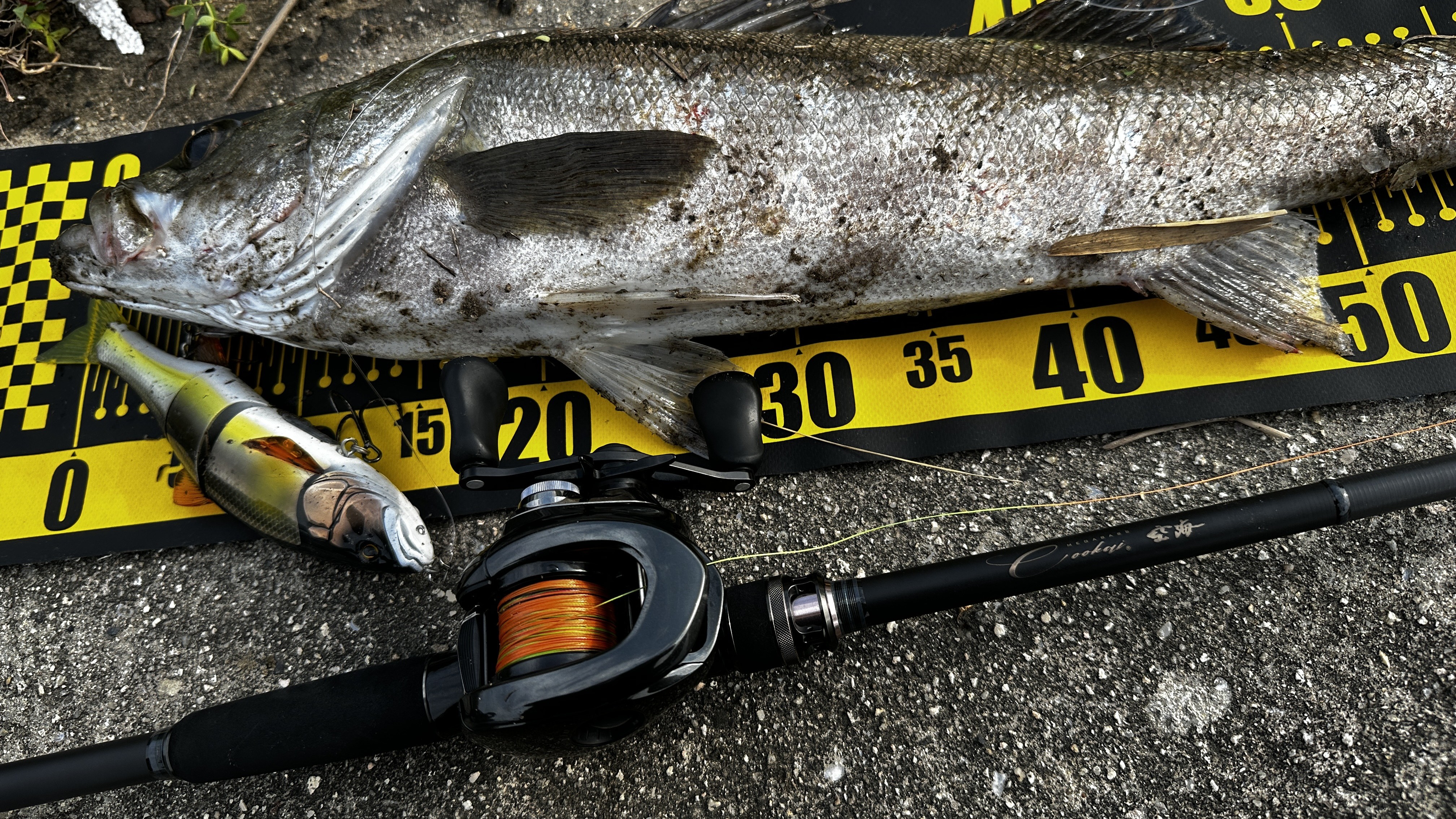 もちろんビッグベイトなのでベイトロッドが適しています。おかっぱりシーバス用のベイトなら7.5~8ftのレングスがあればよいです。