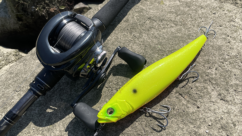 今回のようにビッグベイトゲームで、これを使うことのメリットはやはり強度による高切れ防止という目的と、トップペンシルなどでのバラシを軽減させるためのナイロンの伸びることによる吸い込みのよさを活用するためにはこうした高い強度を持ったナイロンラインの使用も大いにありですね。